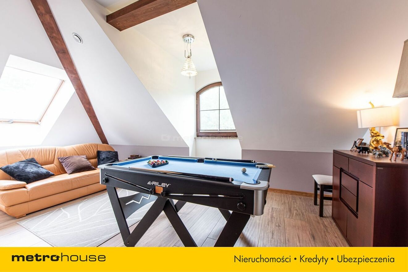 Na piętrze domu znajdują się kolejne 3 sypialnie oraz łazienka. Przestronny hall ze schodami łączący poziomy zdobią wyjątkowe schody z artystycznie giętymi drewnianymi poręczami.